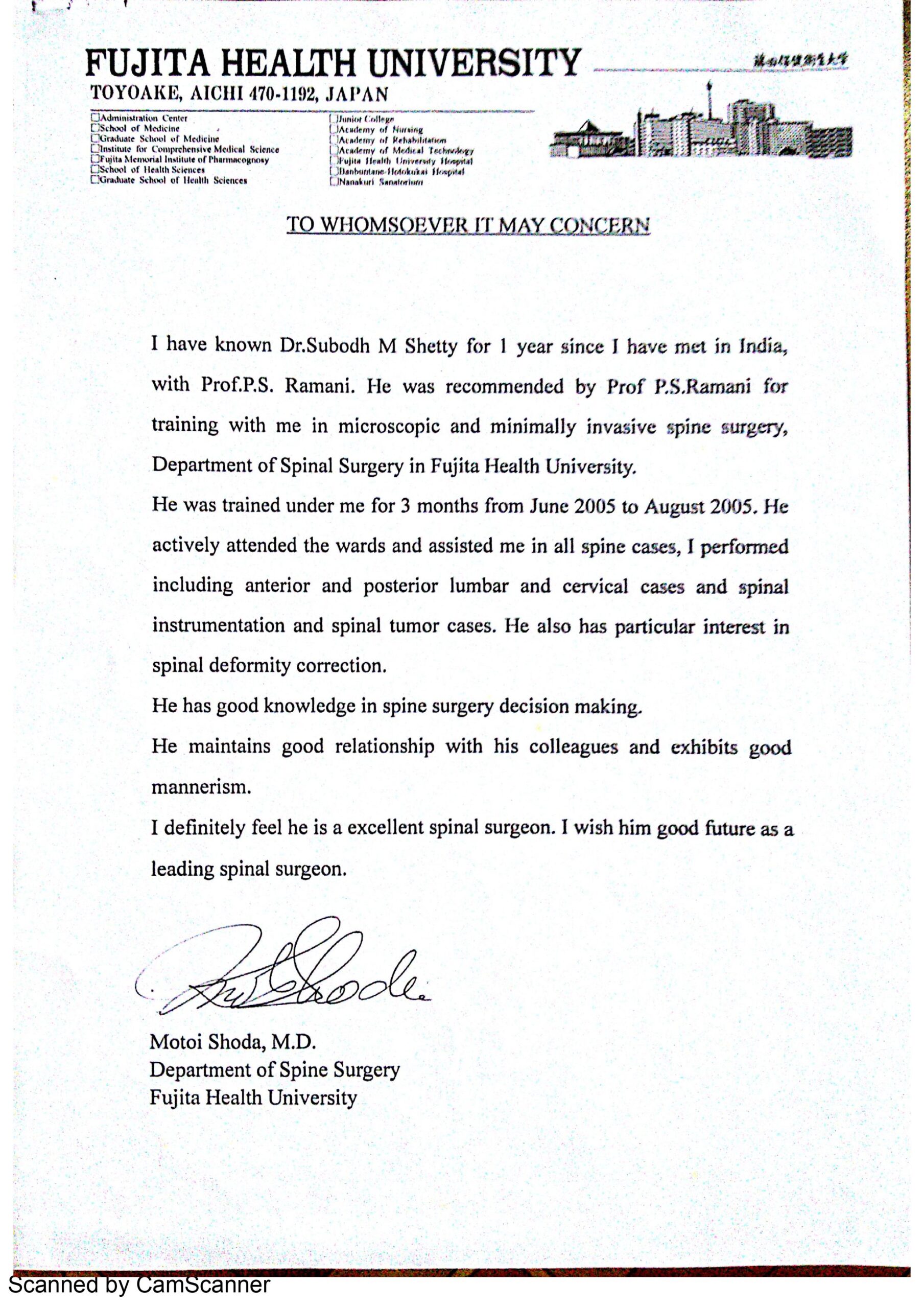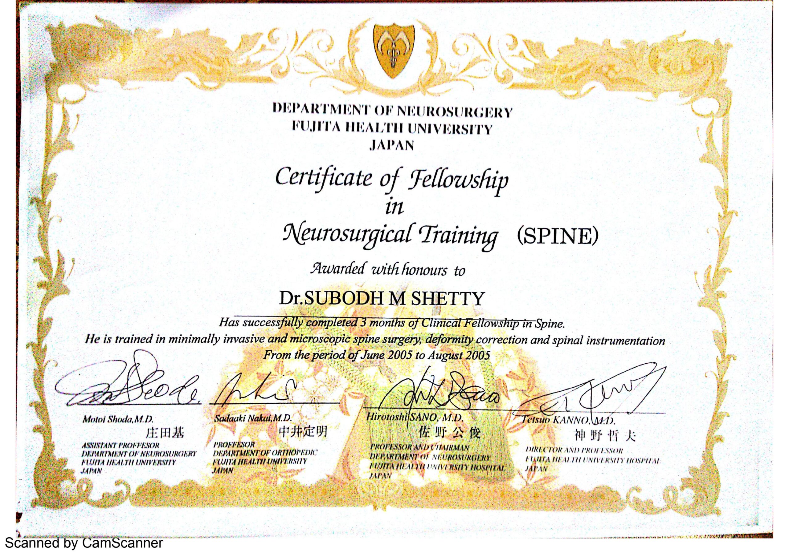 Dr. Shetty’s dedication to his craft has taken him to different parts of the world, where he has continued to hone his skills and deepen his knowledge. He has trained under renowned spine surgeons, including Prof. P.S. Ramanani in Mumbai and Prof. Motai Shoda and Prof. Sadaaki Nakai at Fujita Health University (Nagoya, Japan), among others.
