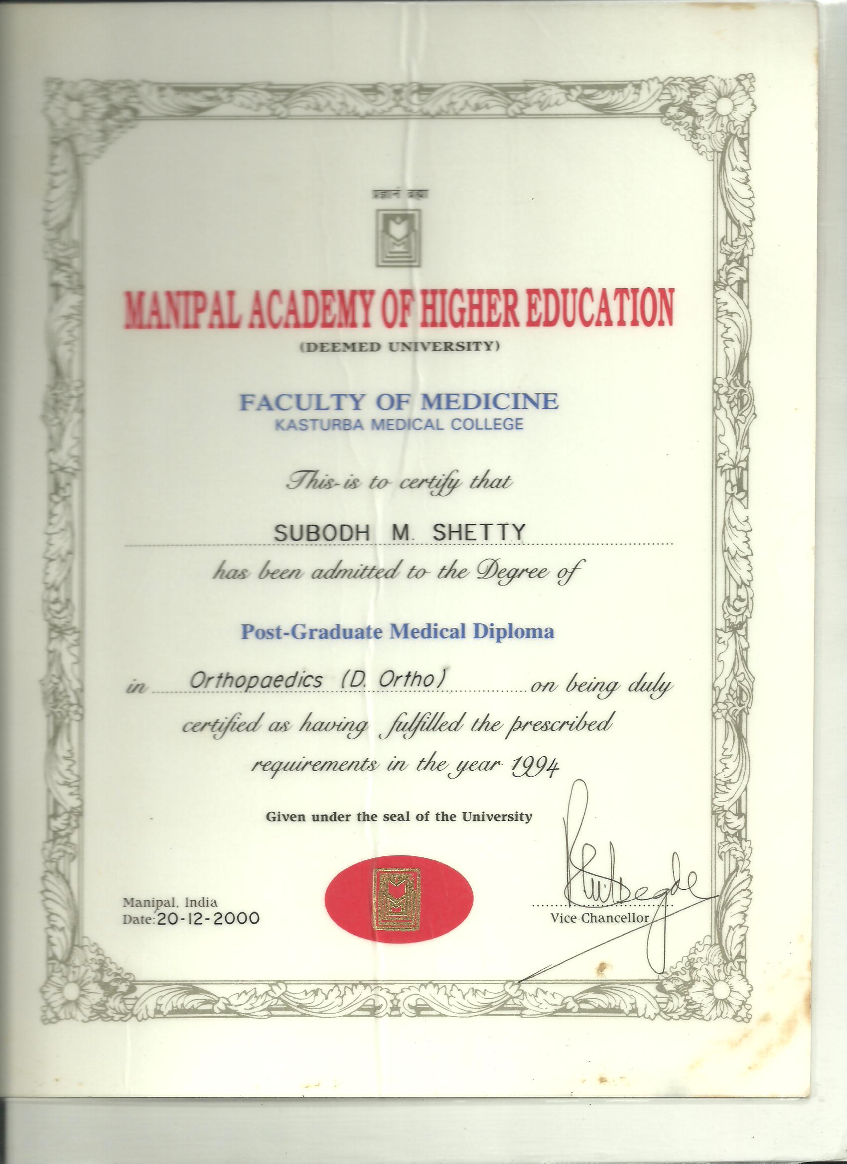Dr. Shetty’s journey is a testament to the transformative power of education. Growing up in Manipal, Karnataka, he received his primary and secondary education at Manipal School. It was here that he discovered his passion for medicine. He pursued his undergraduate medical and orthopedic training at Kasturba Medical College (Manipal University), where he learned the essential skills and knowledge necessary for his success. Today, Dr. Shetty’s story serves as an inspiration for others to pursue their dreams with dedication and hard work.